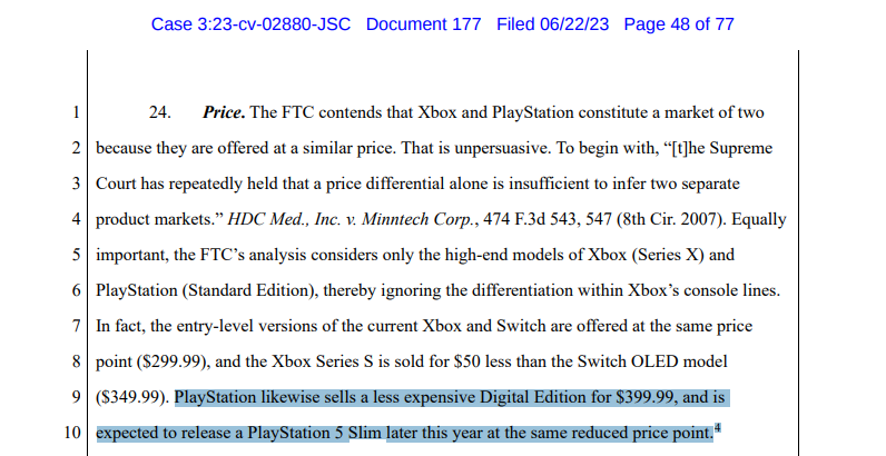 En un documento publicado por la Comisión Federal de Comercio, Microsoft dice que SONY va a lanzar una PlayStation 5 Slim a finales de año, al mismo precio que la PS5 Digital.